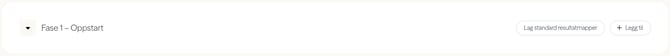 Du kan velge mellom å opprette standard resultatmapper (fra en forhåndsdefinert liste) eller egendefinerte mapper via "Legg til". Du kan også kombinere disse to metodene. Du kan også endre rekkefølge på mappene. Mappene opprettes iht. de kravene kommunen stiller til leveranse i hver fase.