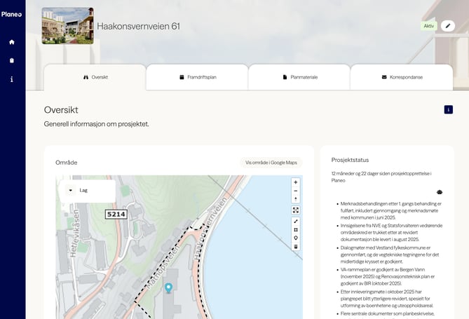 På prosjekts oversikts-side får du tilgang til et aktivitets-kort på høyre side,. Under fanen «Siste aktiviteter» får du rask oversikt over de nyeste hendelsene i prosjektet. Her vises oppdateringer i sanntid, slik at alle involverte alltid er oppdatert på fremdrift og endringer. Dette gir full oversikt over nylige handlinger og bidrar til effektiv informasjonsdeling mellom team-medlemmer.